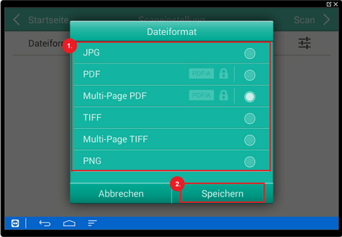 Die Option (3) hat folgenden Bildschirm bei jedem Scanvorgan zur Folge: Sie können hier im Beispiel das Format ändern.